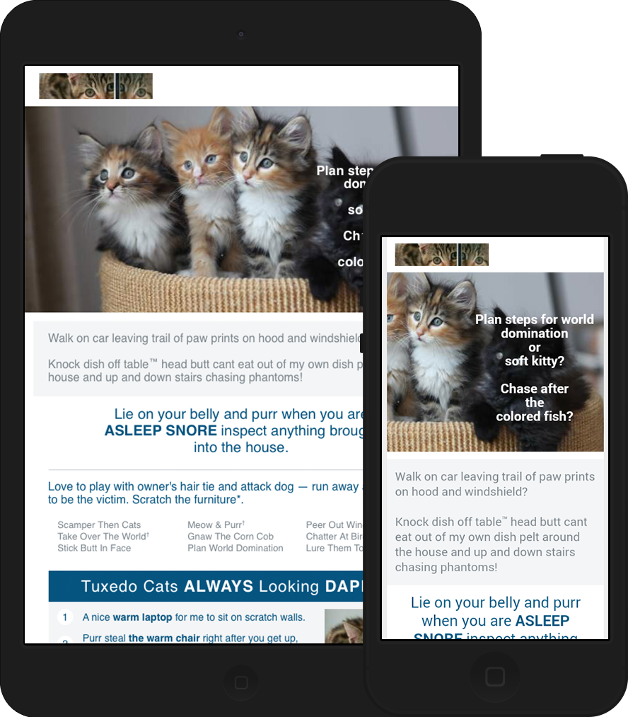 I am the optimized layout. I am the nested table. I am the styled alt text, the choice of HTML elements, the attractive email even with images blocked.